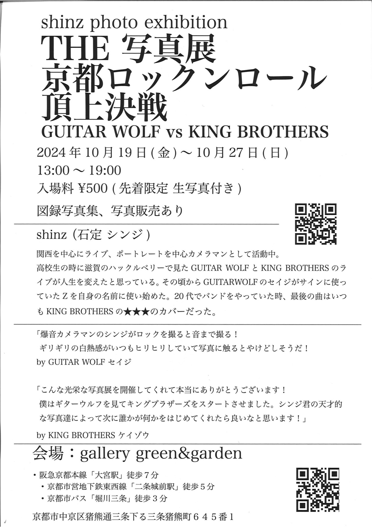 ■shinz図録的写真集「THE写真展京都ロックンロール頂上決戦」GUITAR WOLF VS KING BROTHERS!